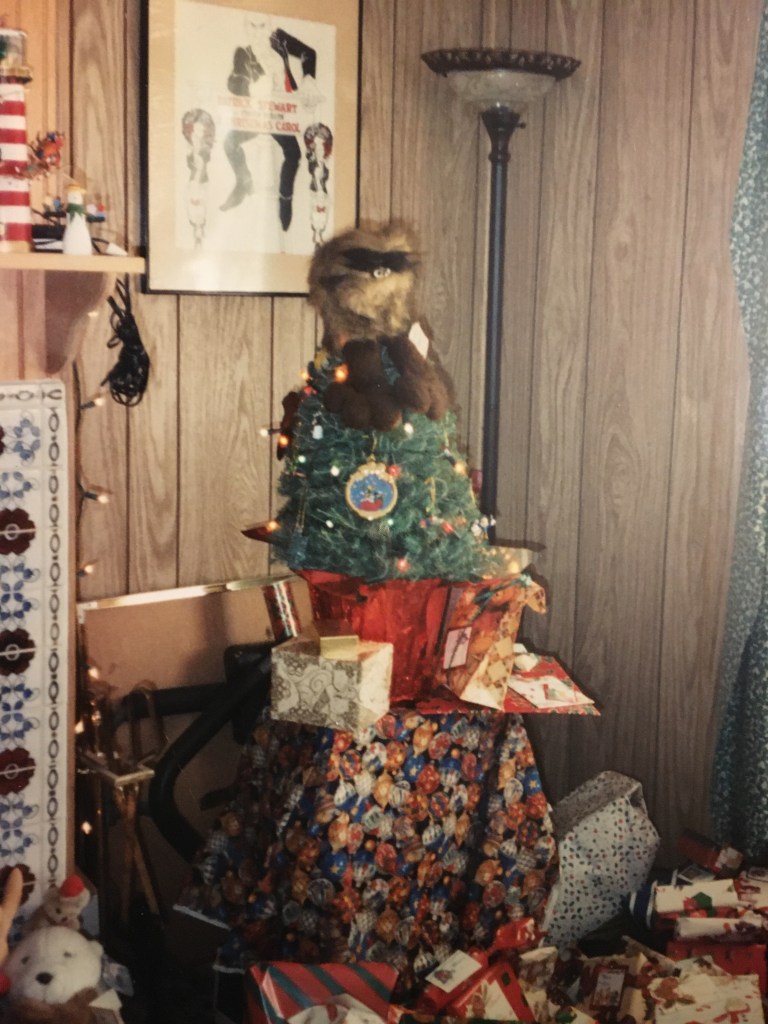 It’s funny how the trees have gone from full greenery to table top and lately, usually a tiny fake tree our cats have no interest in.  But Hector has always gotten his chance to shine, even in the years when the Christmas spirit has eluded me.  Some years, we set him on a live wreath because a tree was just too much work.  I do love the scent of fresh evergreens, so even if there’s no tree, there’s usually at least a live wreath.