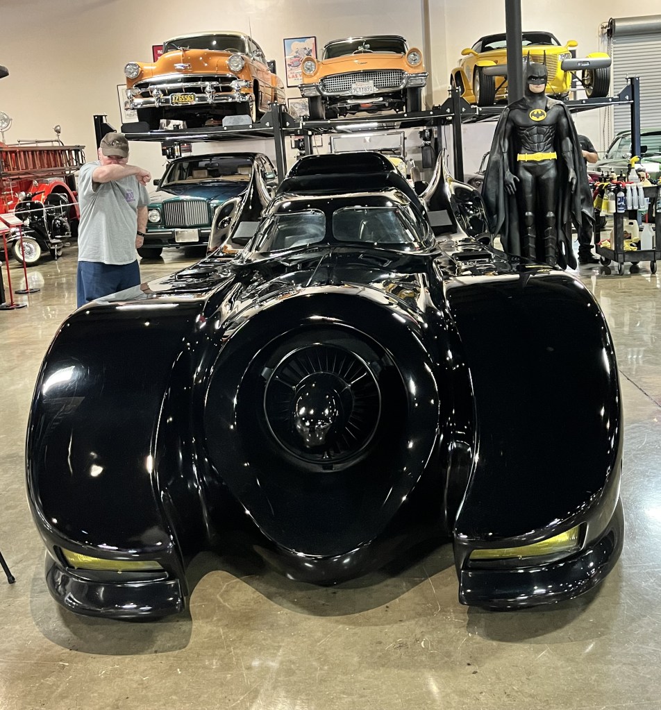 This Batmobile is from Batman Returns, with Michael Keaton and Michelle Pfeiffer.
