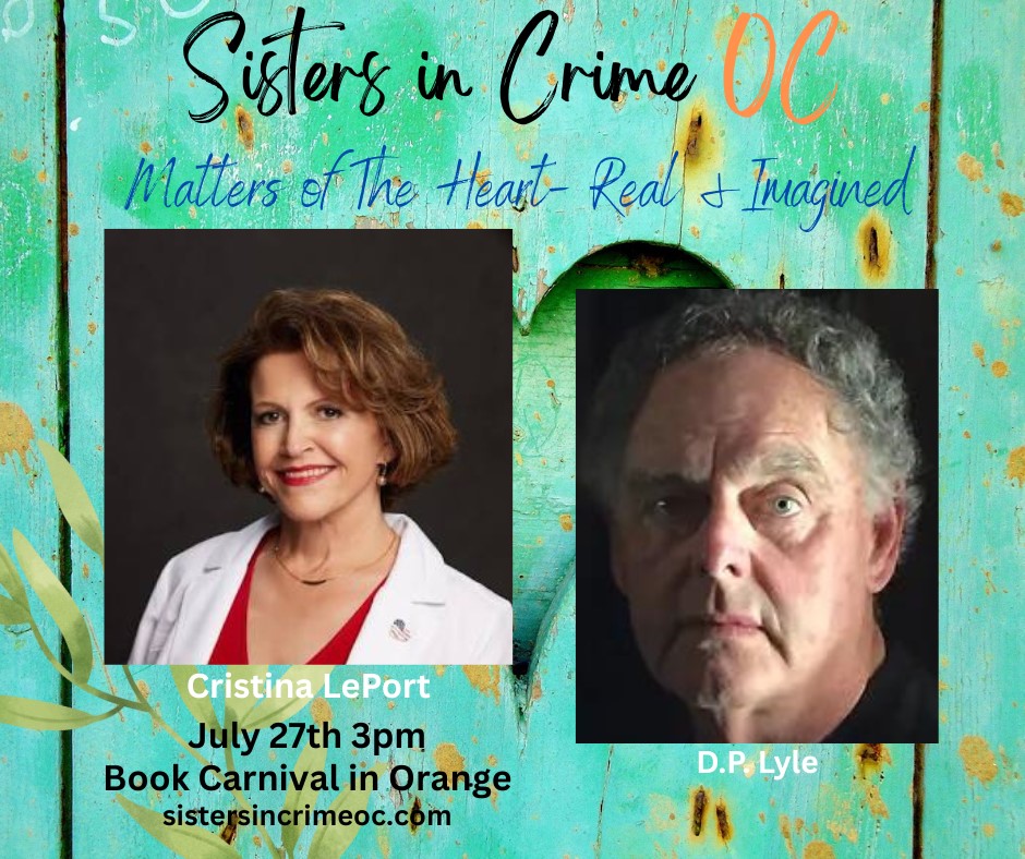I did go to the Sisters in Crime Orange County meeting last Sunday, though, to see D.P. Lyle and Cristina LePort talk about romance in crime stories. It was an interesting afternoon hearing about their different approaches to writing. They both write crime books ~ D.P. has several series ~ the one I’ve read, the Jake Longly mysteries, is very funny and sexy ~ and Cristina writes high stakes medical thrillers. I used to belong to the national Sisters in Crime group but I’m thinking about joining again, so I can be a part of the Orange County group. They were very welcoming. Being a shy introvert, I jetted straight out after the meeting, but they seem like a group I could get comfortable with… eventually. ❤