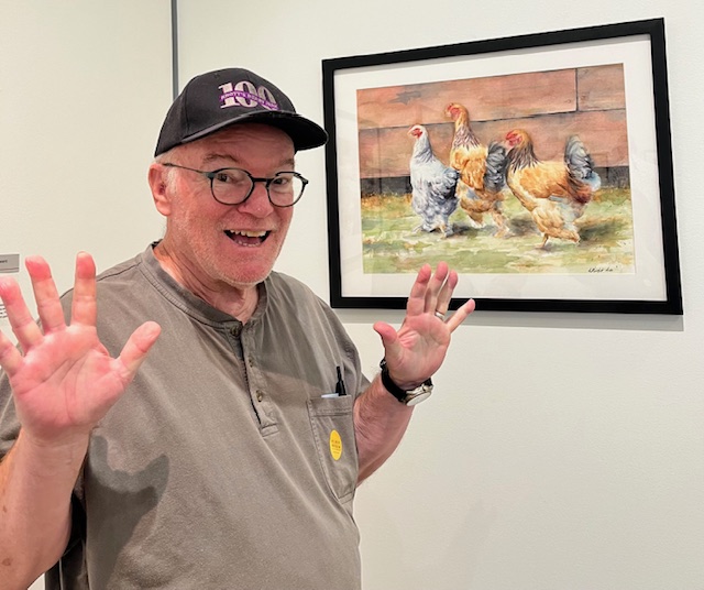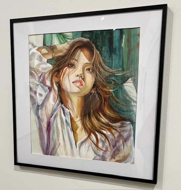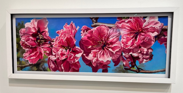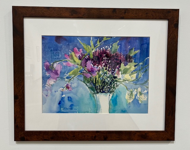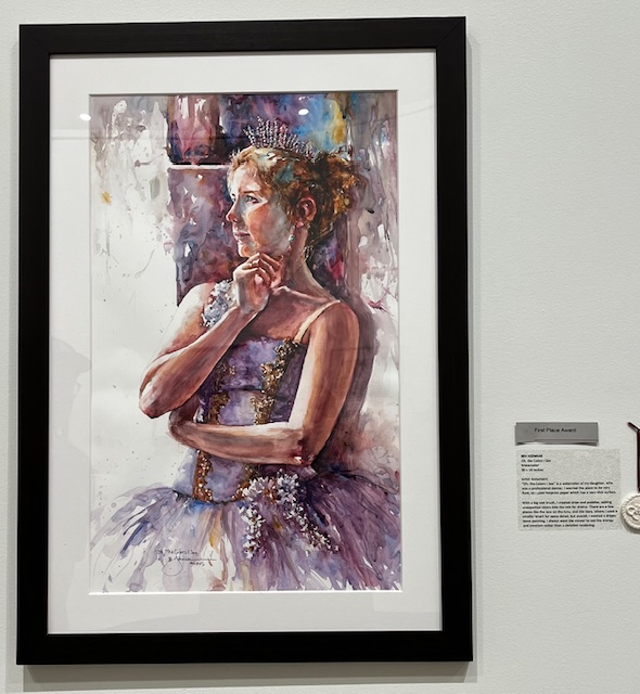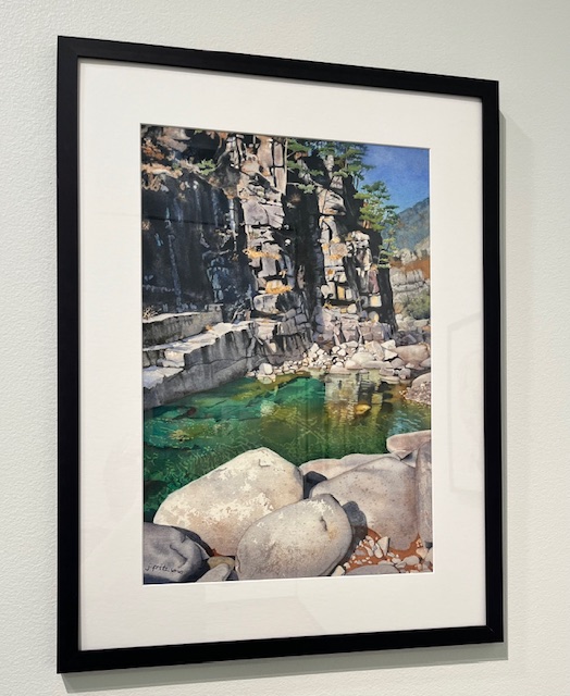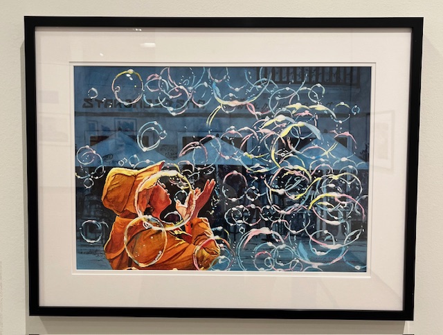 We went to the Hilbert Museum for my birthday in July. They recently mounted two new exhibits:  57th Watercolor West International Juried Exhibition and Pastel Society of the West Coast: 99 Voices in Pastel. Here are some of the pieces that The Husband and I liked. Pardon the weird angles and perspectives ~ I was trying to foil the reflections on the glass in the frames. Settle in with a cup of something yummy, ’cause there’s a lot to see. Enjoy!